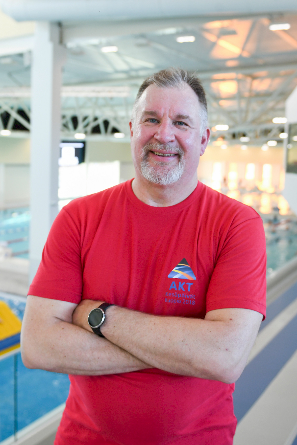 Tässä ammatissa on oltava fyysisesti kunnossa. Siksi kävelen, uin, jumppaan ja käyn kuntosalilla säännöllisesti. Täällä uimahallilla on hyvä myös turinoida miesten kanssa saunassa. Sillä pysyy pää kunnossa.