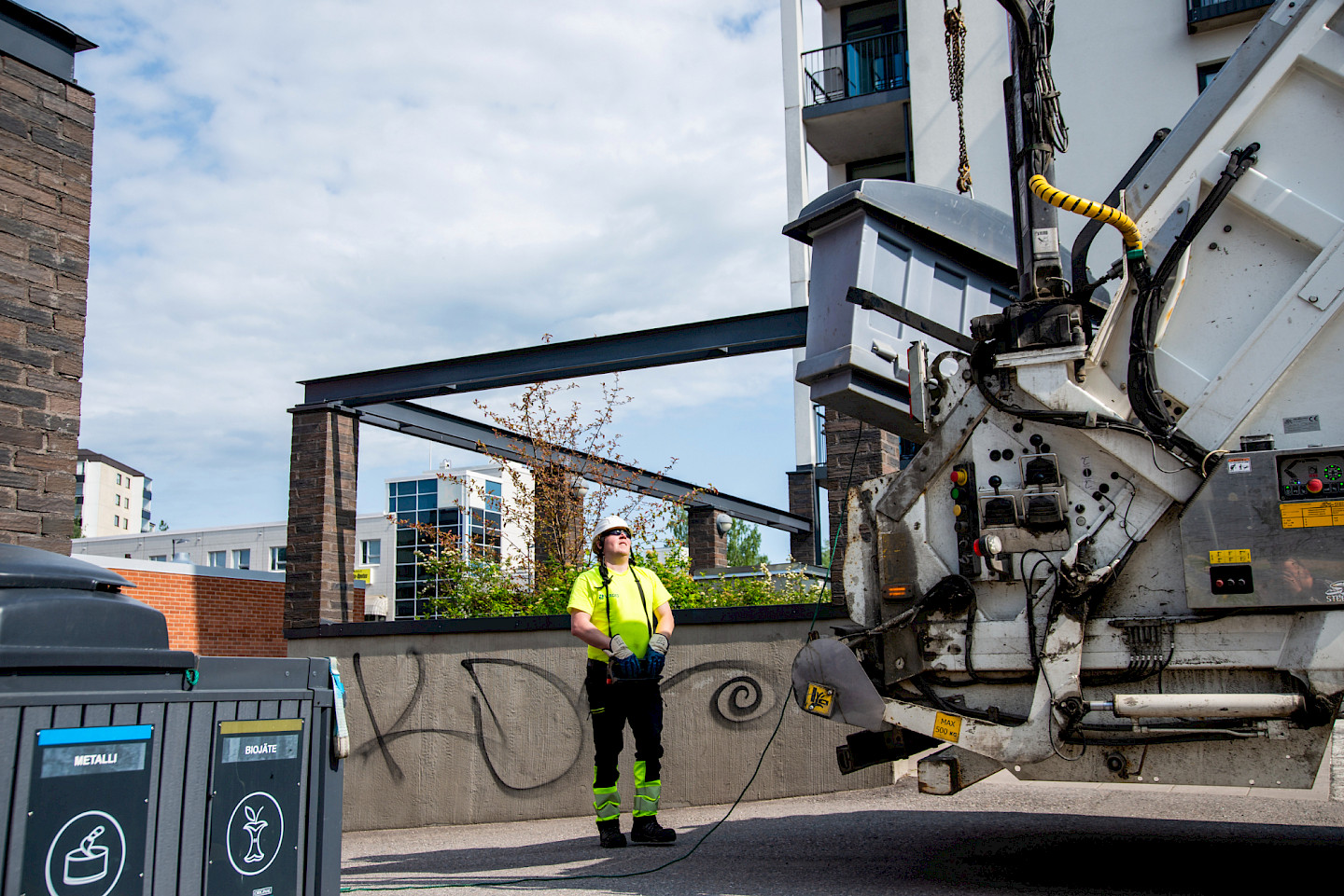 Reitit ja keräysalueetkin ovat hyvin vaihtelevia. Keskustan vilinässä ja ahtailla pihoilla työ on hieman erilaista kuin harvaan asutummalla alueella. Jäteautot saavat pysähtyä ajoväylälle 15 minuutiksi, jos sille on tarve.