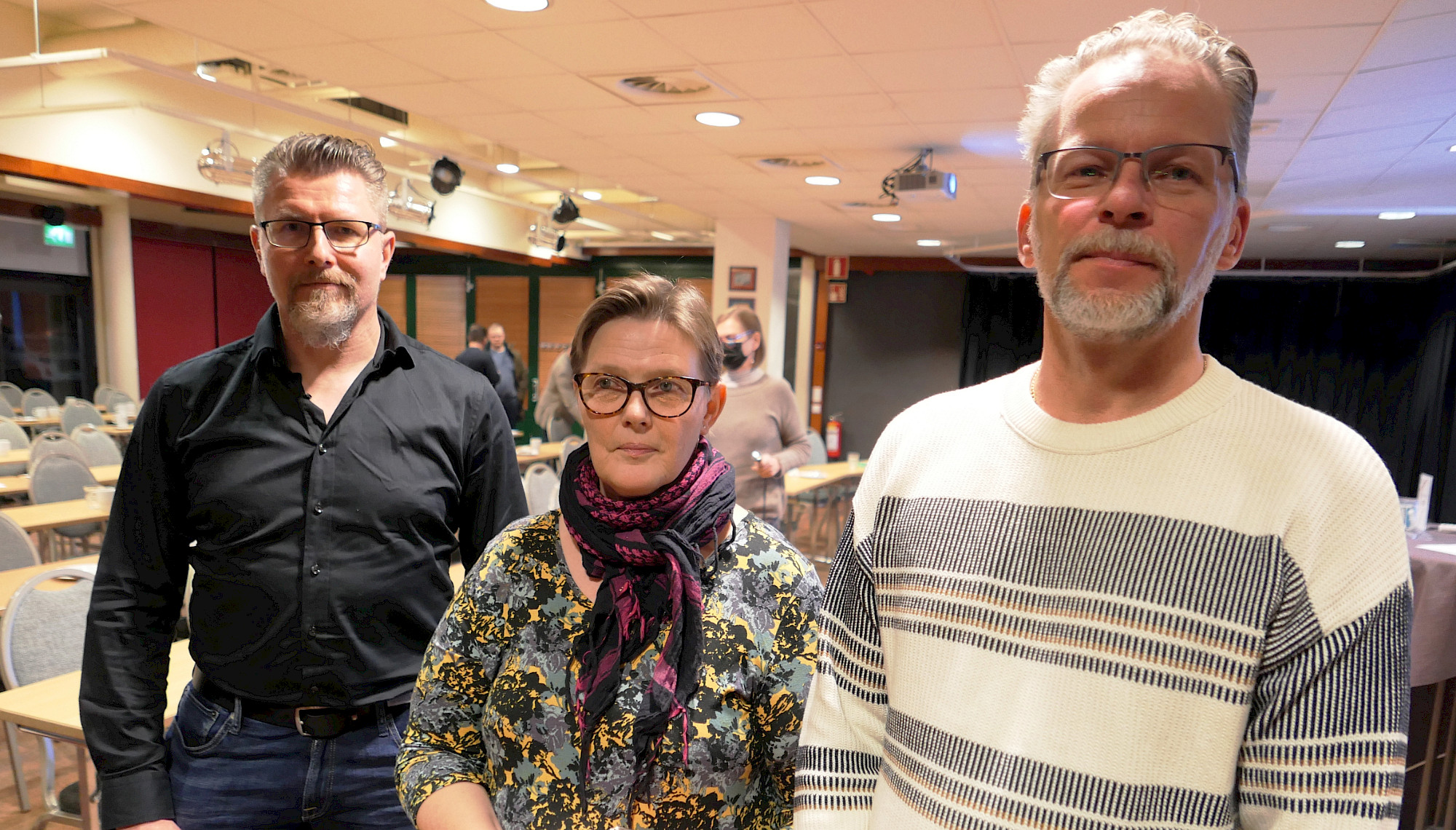 Ahtaajat Hannu Sairanen (vas.) Helsingistä, Marjo Nieminen Raumalta ja Marko Heinonen Kokkolasta tunnistivat seminaarin puheenvuoroista omalle työpaikalleen tuttuja ilmiöitä.