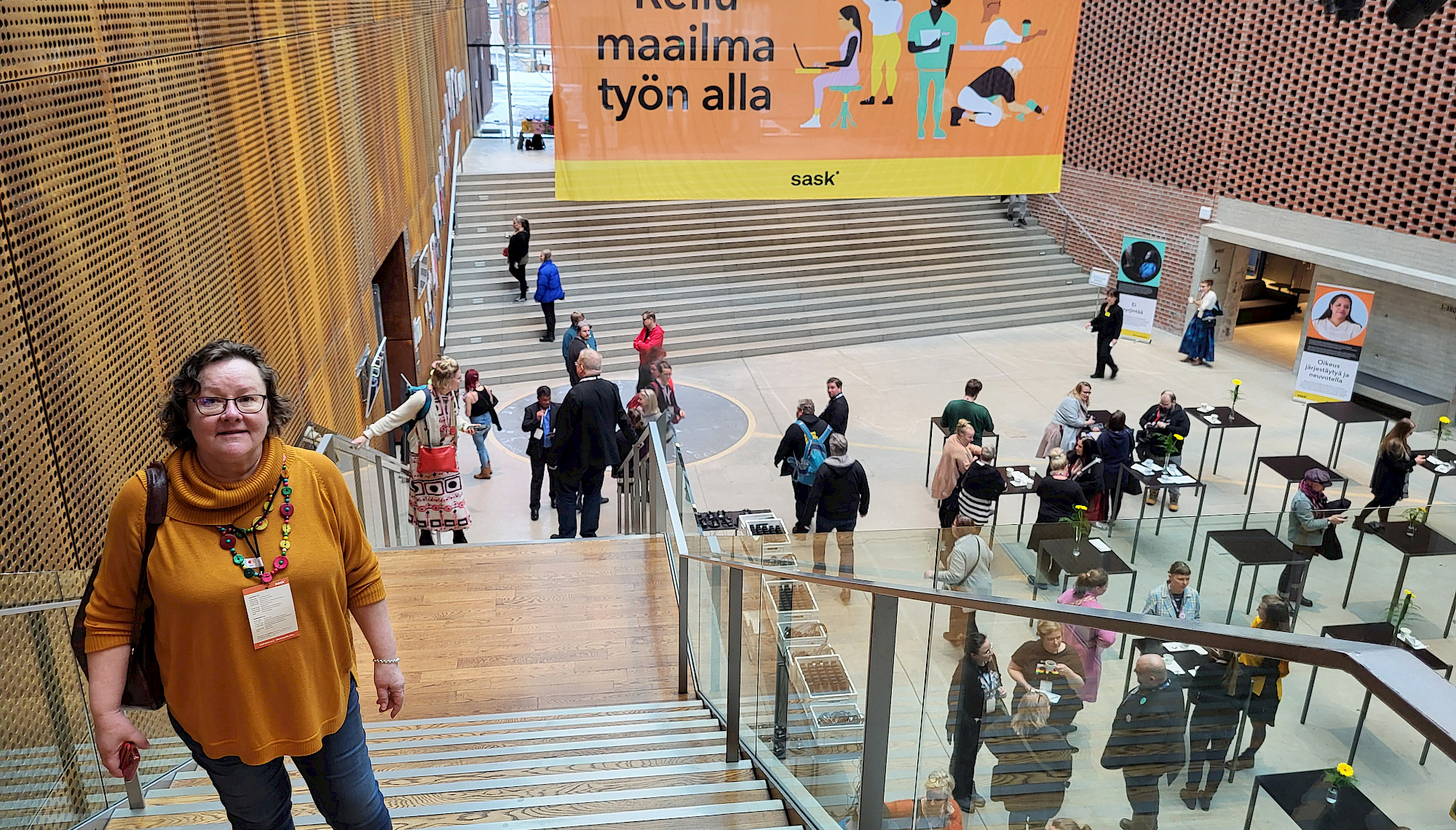 Suomen Ammattiliittojen Solidaarisuuskeskus SASKin solidaarisuuspäivät järjestettiin neljän vuoden tauon jälkeen. Ne kokosivat Hämeenlinnan Verkatehtaalle laajasti eri ammattiliittojen edustajia 3.-4. helmikuuta. Vasemmalla AKT:n sopimustoimitsija Katri Höök.