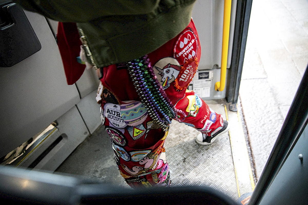 Kello 12.20 bussi starttaa takaisin Turkua kohti Kauppakeskus Myllystä. Samana päivänä kaupungissa vietetään valtavaa opiskelijatapahtumaa, Pikkulaskiaista. Haalaripukuista kansaa alkaa keskustan lähestyessä nousta kyytiin yhä enemmän.