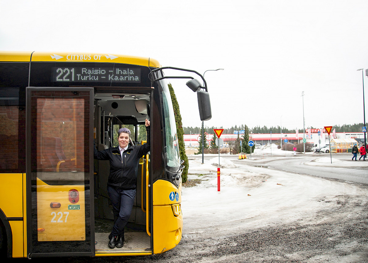 Turkulainen Taija Niemi on viihtynyt linja-auton ratissa jo 24 vuotta. Eniten työssä miellyttää itse ajaminen, mutta asiakaspalveluhenkisyyttäkin tarvitaan. Pääasiassa matkustajat ovat asiallisia.