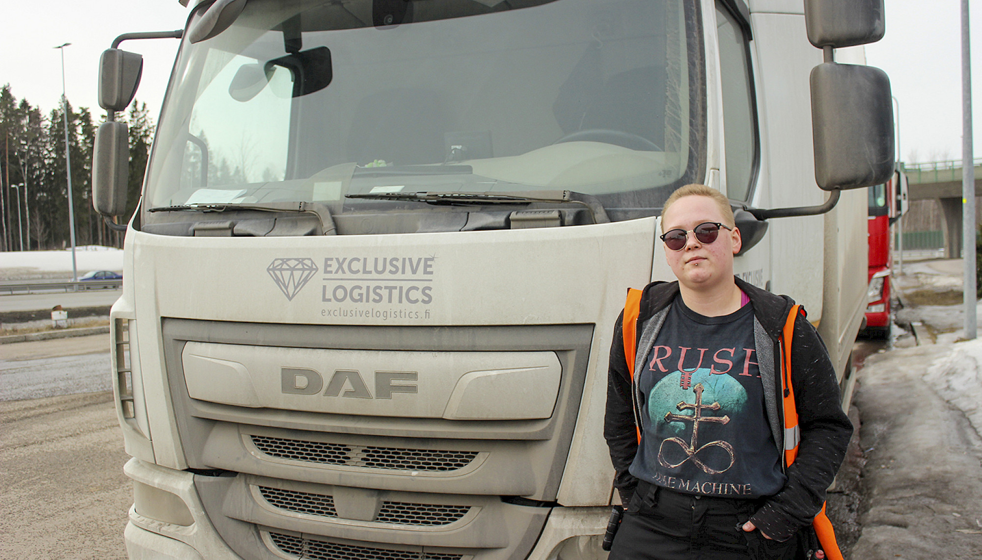 Hyttinen valmistui kuorma-autonkuljettajaksi viime jouluna ja pääsi heti töihin. Hän työskentelee Arsenaali-vuokrafirman kautta Exclusive Logisticsilla ja ajaa Matkahuollon paketteja.