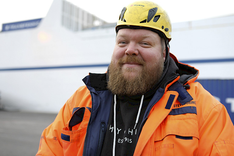 – Teen kaikkea nosturista jalkamiehen hommiin, mutta en lastinlaskentaa eli taljaustyötä, Jori Hedback kuvailee työtään.